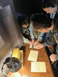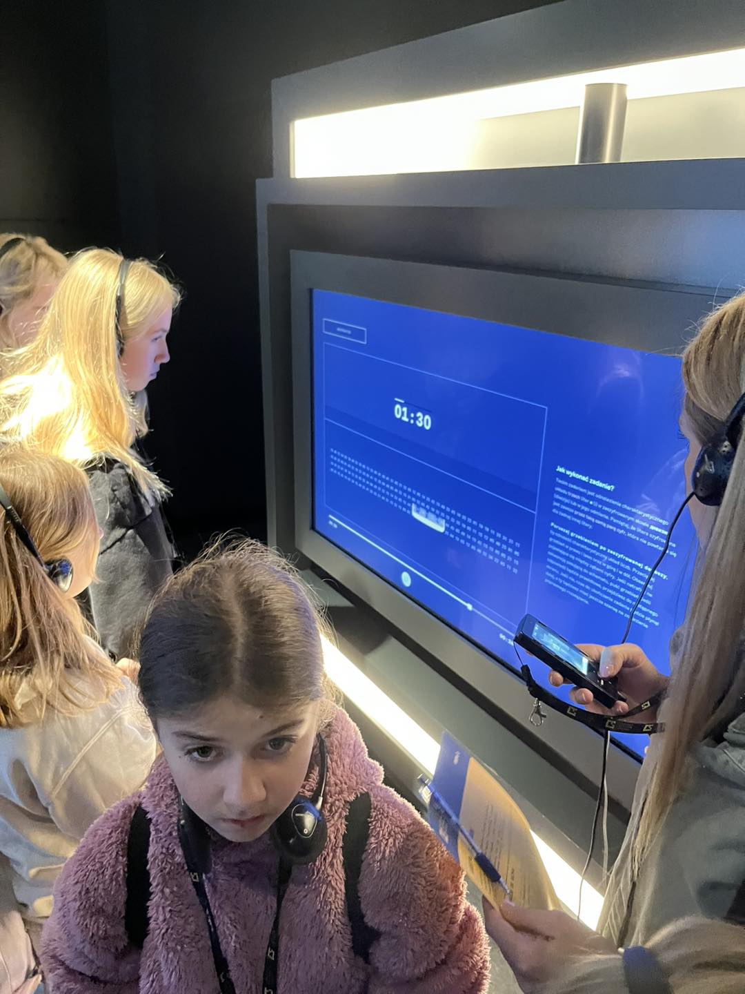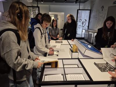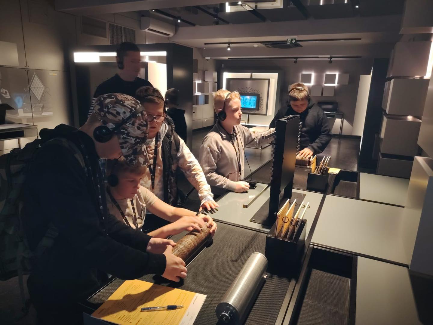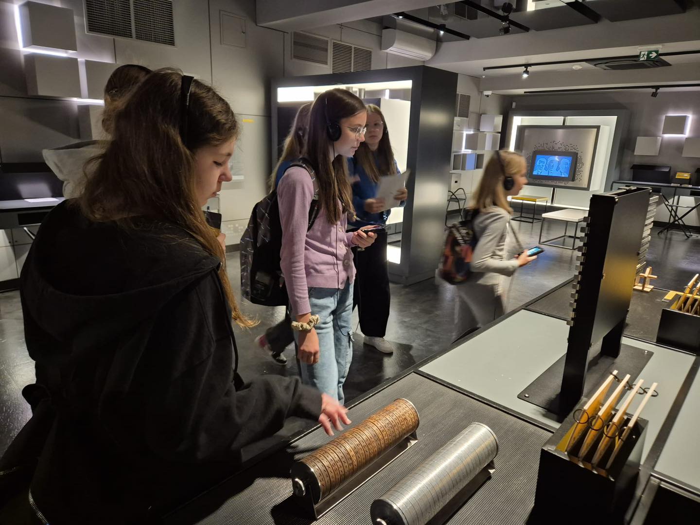 Zwiedzanie odbywało się z pomocą audioprzewodnika, który w ciekawy sposób prowadził uczniów przez kolejne sale, opowiadając o wydarzeniach historycznych, wynalazkach oraz ludziach stojących za rozszyfrowaniem Enigmy.