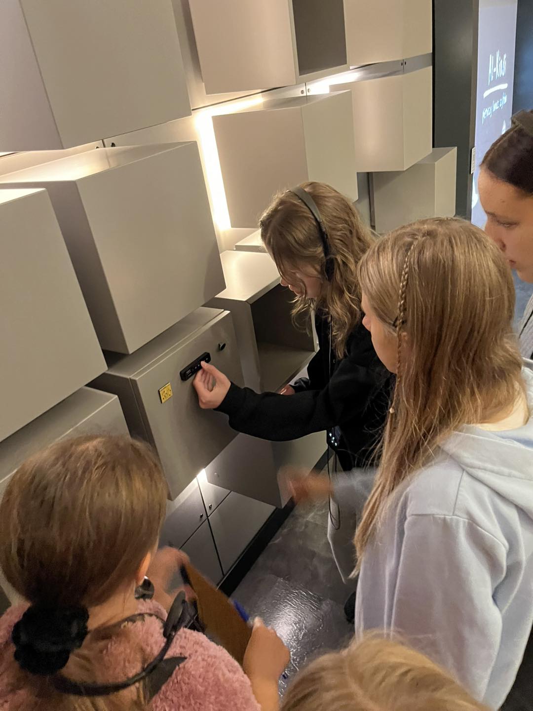 Podczas wizyty uczniowie zostali podzieleni na trzy grupy. Każda z nich otrzymała specjalne karty szyfrów z zadaniami logicznymi i matematycznymi, które wymagały współpracy, sprytu i uważnego myślenia. Rozwiązując kolejne zagadki, grupy stopniowo odkrywały tajny kod potrzebny do otwarcia sejfu. W środku czekała na nich niespodzianka – upominki, będące nagrodą za wspólną pracę i wytrwałość.